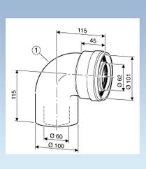 Curva concentrica a 90°, Ø 60/100 mm